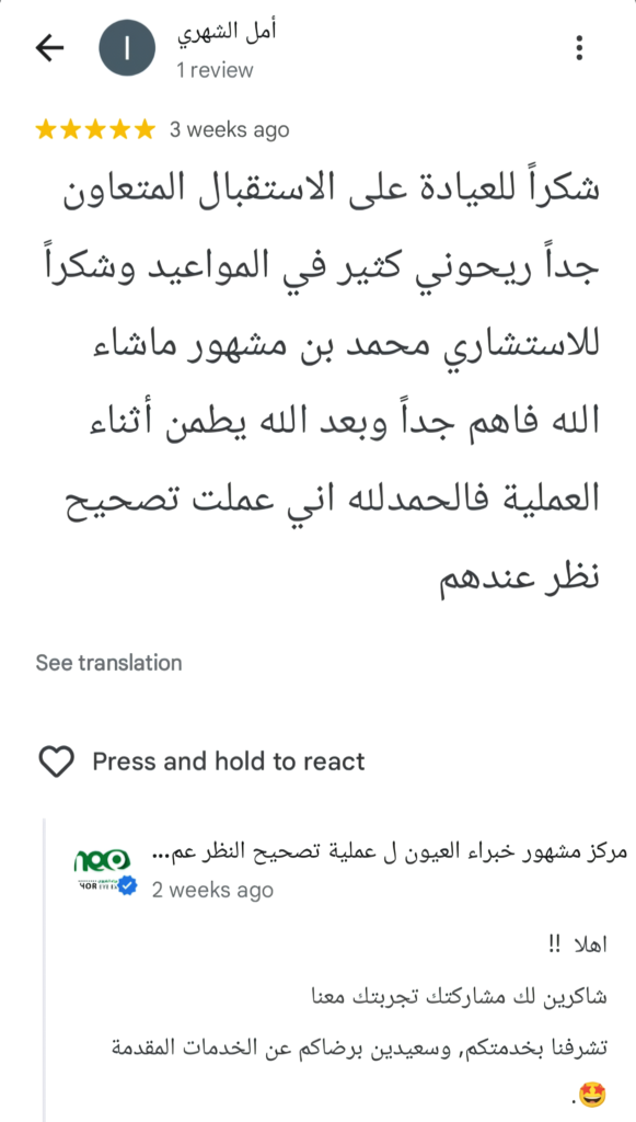 من بعض مراجعات ممن وثقوا بمركز مشهور خبراء العيون لإجراء عملياتهم من خارج المملكة وداخلها.